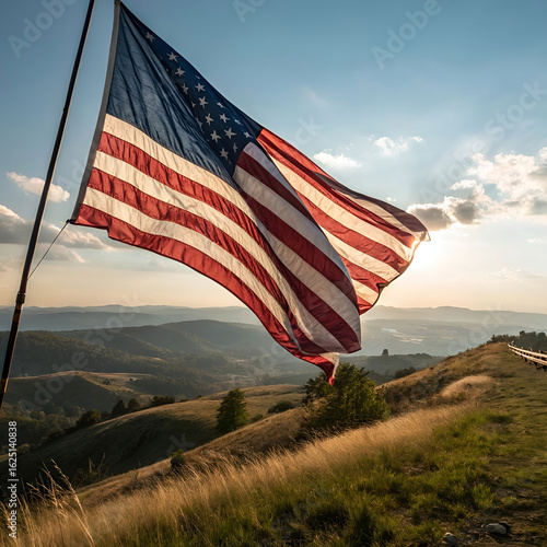 © Arslan, Obraz premium Close up of fluttering flag caught in sharp wind on rooftop