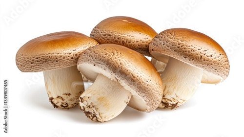 Fototapeta premium Close-up of Four Brown Mushrooms Isolated on White Background