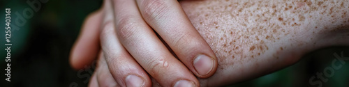 © Lila Patel, Fototapeta premium Close-up of Freckled Hands Clasped Together