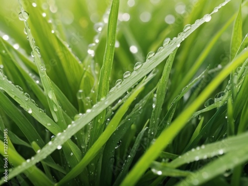 © Siti, Naklejka premium close up of fresh green grass with morning dew.