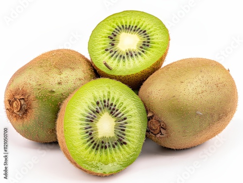 © Ari Lucky, Obraz premium Close-up of Fresh Green Kiwis on a White Background
