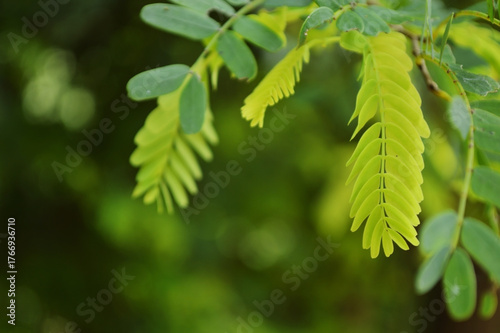 Fototapeta premium Close-up of fresh green leaves with natural background in daylight