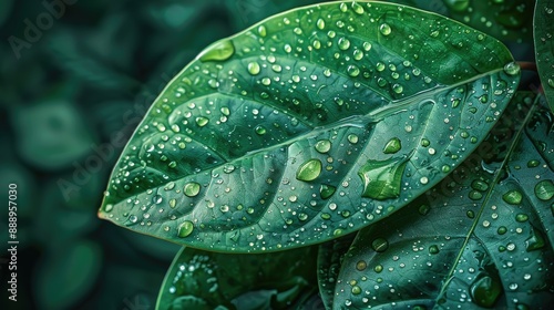 Fototapeta premium Close-up of fresh green leaves with water drops.