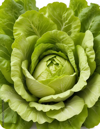 © Nazuna, Fototapeta premium Close-up of fresh green lettuce leaves on a white background