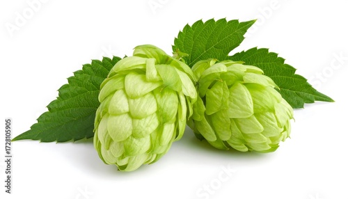 © yudiono, Fototapeta premium Close-up of fresh hops with leaves