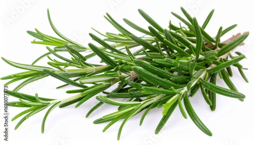 Fototapeta premium Close-up of fresh rosemary sprigs, perfect for culinary use and herbal remedies, isolated on a white background.