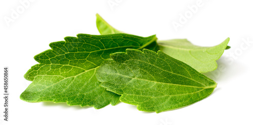 © Amy Lv, Obraz premium close up of fresh stevia isolated on the white background