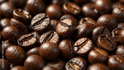Fototapeta premium Close-up of Freshly Roasted Brown Coffee Beans for Caffeine Background Texture