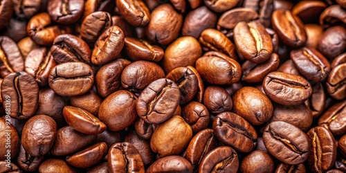Fototapeta premium Close-up of freshly roasted coffee beans, aroma, caffeine, espresso, farming,...