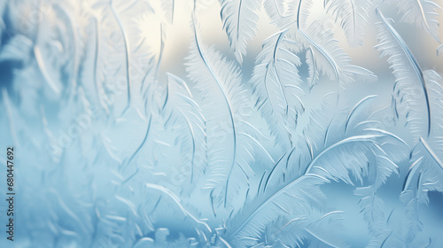© kazakova0684, Fototapeta premium Close-up of frost patterns on winter window