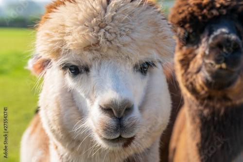 © Toms, Obraz premium Close up of funny looking alpacas at farm