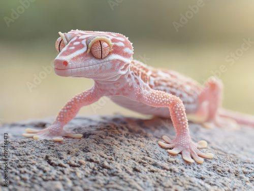 Naklejka premium Close up of gecko on textured surface, showcasing details