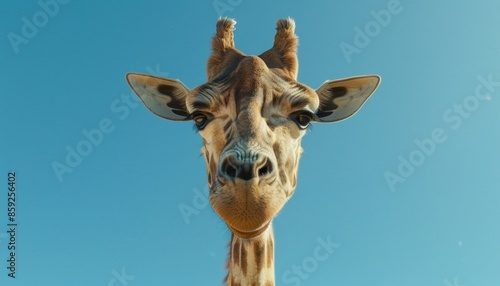 © DruZhi Art, Naklejka premium Close-Up of Giraffe Against Clear Blue Sky