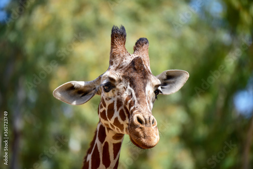 © Gur, Fototapeta premium Close-up of giraffe head in profile. Giraffe in the park on a summer day. Selective focus.