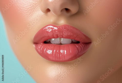© Aliaksandr Barouski, Obraz premium Close-up of glossy lips with a soft pink hue and smooth texture