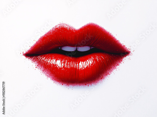 © Zilvinas, Obraz premium Close-up of glossy red lips with vibrant lipstick, exuding sensual beauty.