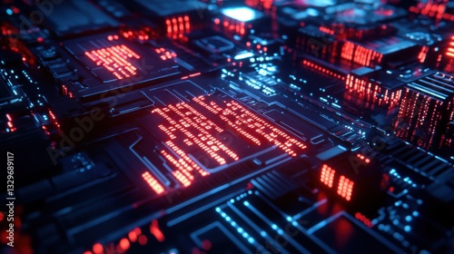 © SepazWorks, Obraz premium Close-up of Glowing Binary Circuits in a Quantum PR