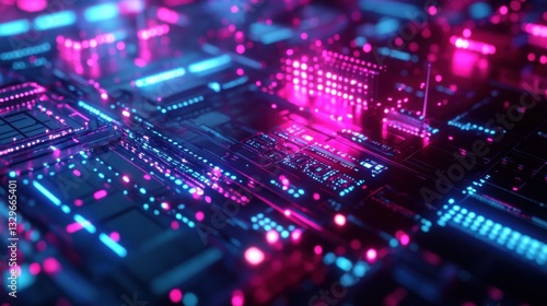 Obraz premium Close-up of Glowing Qubits in Futuristic Quantum Maze