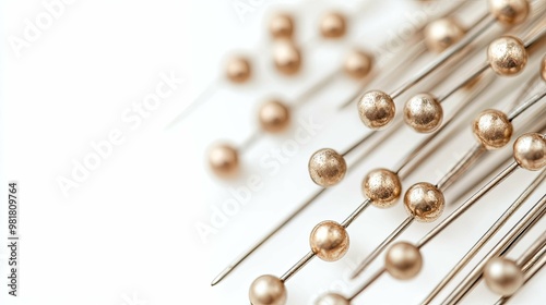 © otwdesign, Obraz premium Close-up of Golden-Headed Pins on a White Background
