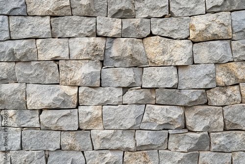Fototapeta premium Close-up of granite stone wall texture with stacked blocks, rough surface,...