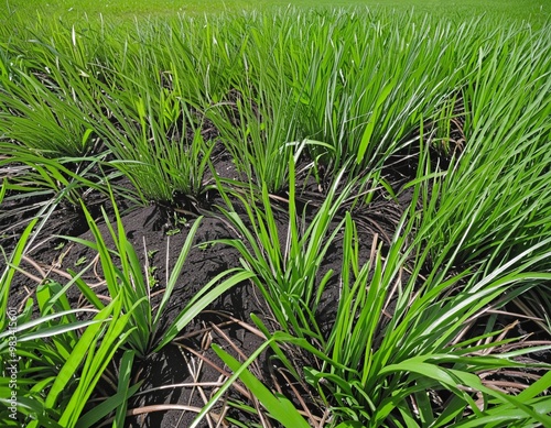 Obraz premium Close-Up of Grass-Covered Ground with Animal Tracks