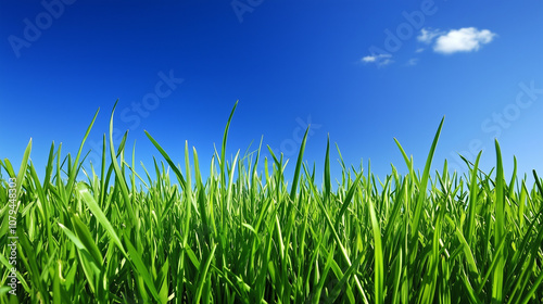 Obraz premium Close-up of grass in front of blue sky.Copy space.