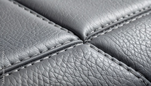 Obraz premium Close-up of gray, textured leather with a quilted pattern and visible,...