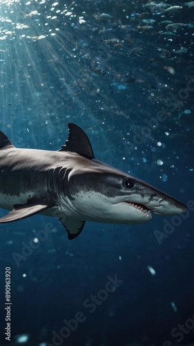 Fototapeta premium close-up of Great White Shark, cinematic, deep sea background
