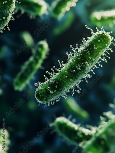 Naklejka premium Close-up of green bacteria, ideal for scientific themes in health education...