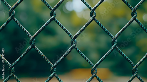 © artzone, Fototapeta premium Close Up Of Green Chain Link Fence With Blurred Background