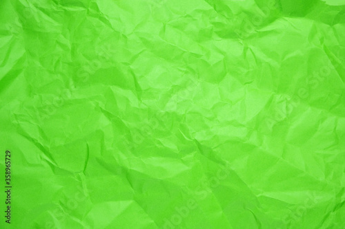 Fototapeta premium Close up of green crumpled empty sheet of paper.