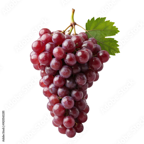 © Sanya, Fototapeta premium Close-up of green grapes with leaves isolated on white background