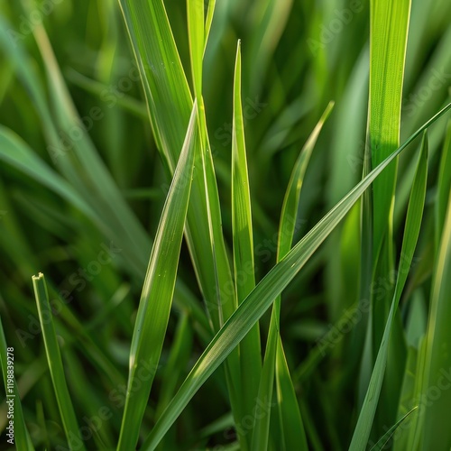 Obraz premium Close-up of Green Grass Highlighting Blade Details and Structure