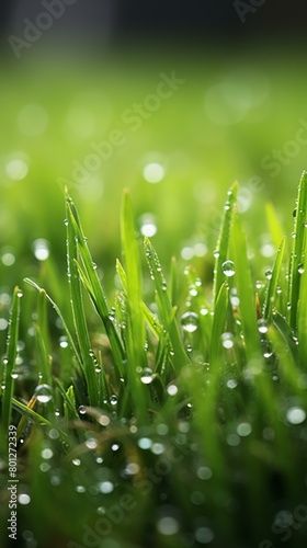 © duyina1990, Fototapeta premium Close-up of green grass with water drops