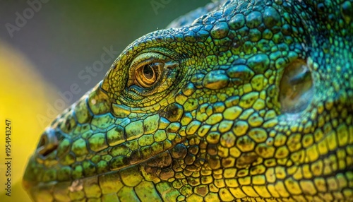 Obraz premium Close-up of Green Iguanas Scaly Head.