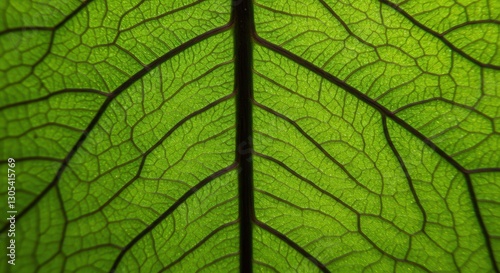 Obraz premium Close-up of Green Leaf Revealing Intricate Vein Patterns and Texture