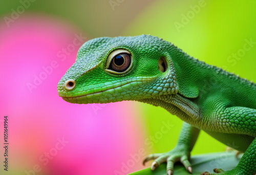 © Limanou Mikael, Fototapeta premium Close-up of green lizard with vivid eye and gradient background