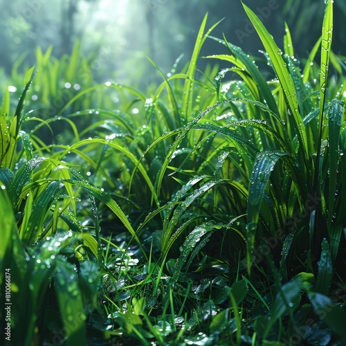 © Nastassia, Obraz premium close up of green nature, texture background, some water drops, flat vector illustration