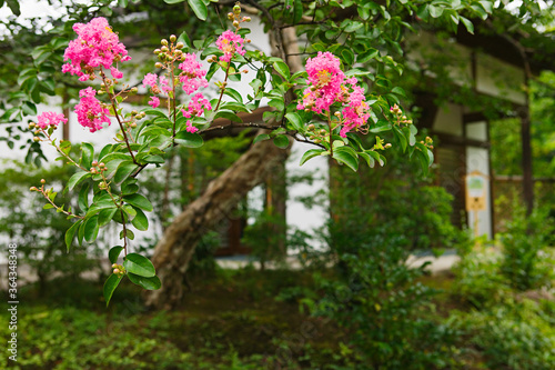 © MDBPIXS, Fototapeta premium Close up of green plant leaves and flowers in garden