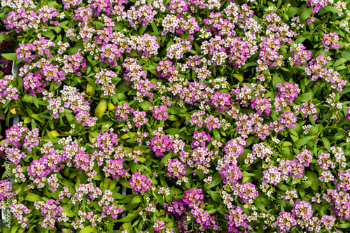 Naklejka premium Close up of ground covering blossoming Lobularia maritima. Small flowering...