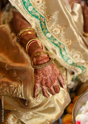 Fototapeta premium Close Up of hand and arm of Hindu / Indian Bride with henna