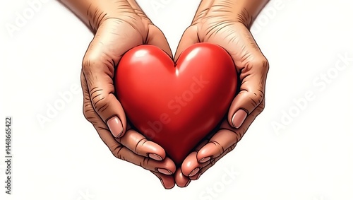 © Oktaf, Obraz premium Close-up of hands gently holding a large red heart