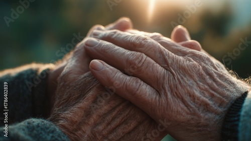 © spyrakot, Fototapeta premium Close-Up of Hands Symbolizing Intergenerational Love in Soft Light