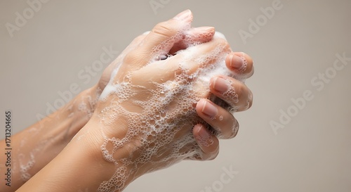 Fototapeta premium Close up of Hands Washing with Soap and Bubbles