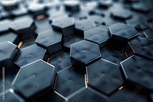 © Valentin, Obraz premium Close-Up of Hexagonal Patterned Surface with Metallic Texture