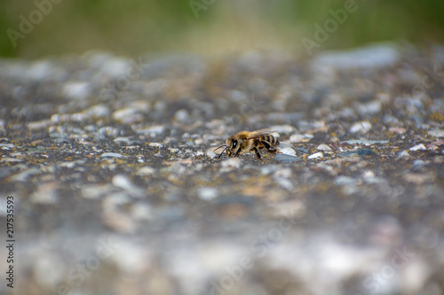 © radebg, Obraz premium Close-up of Honeybee perched on Concrete wall