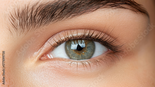 © siraphol, Obraz premium Close up of human eye showcasing intricate details, including iris and eyelashes, with natural