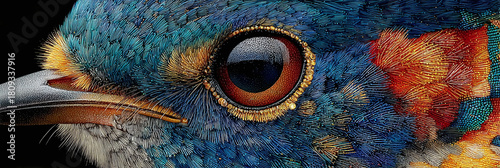 © ภูริพัฒน์ ภิรมย์กิจ, Obraz premium Close-up of Hummingbird's Eye Detailed Feathers and Glimpses of Nature's Majesty