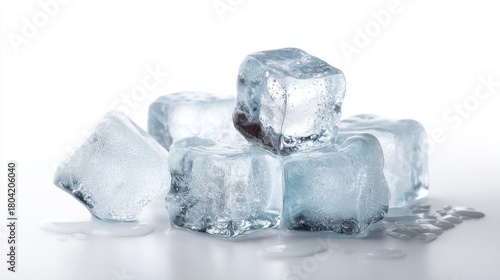 © Di Studio, Obraz premium close up of ice cubes and water drops on white background