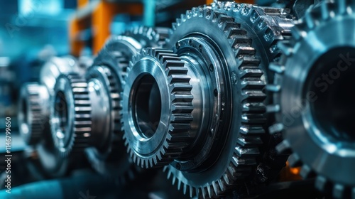 Fototapeta premium Close-Up of Industrial Gears in Mechanical Engineering Environment